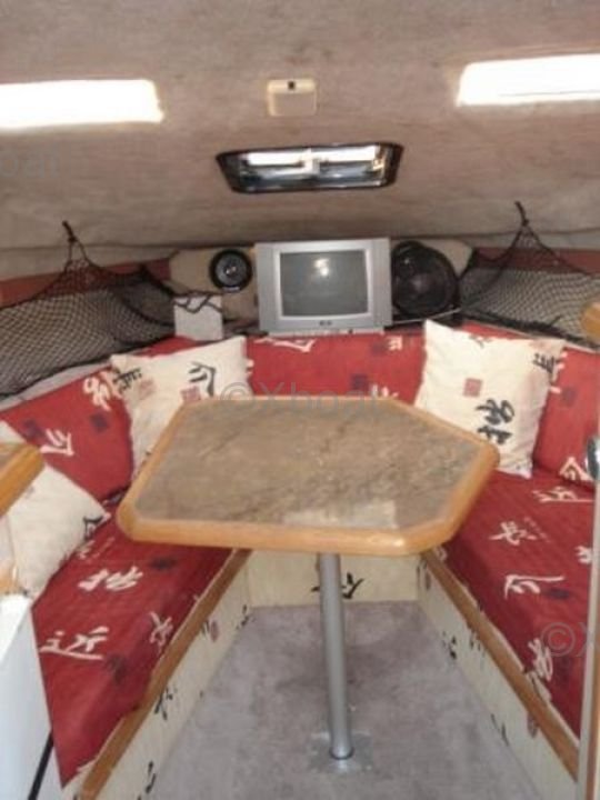 Comodidad y equipamiento: Este barco está diseñado para ofrecer el máximo confort a sus ocupantes. Cuenta con una sala espaciosa con asientos convertibles en cama, una cocina bien equipada con fregadero, refrigerador y cocina, así como un baño completo con ducha y retrete.