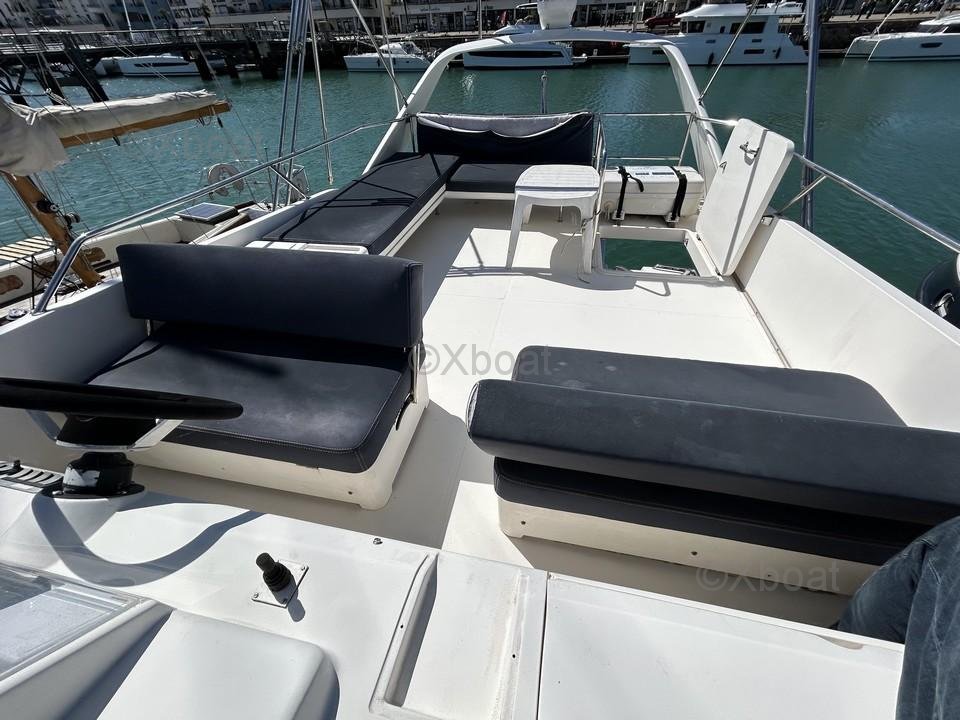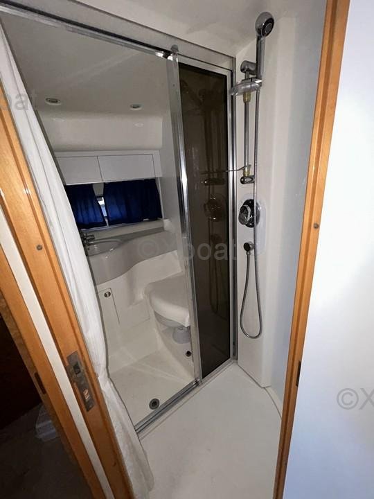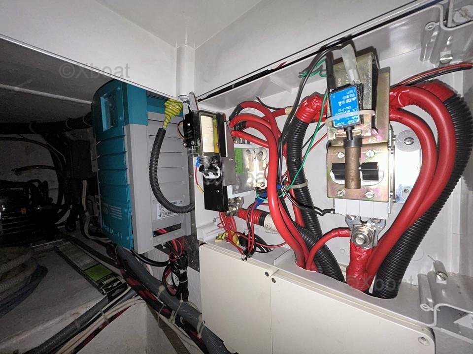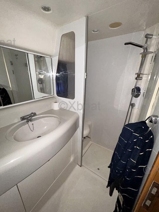 En el interior, encontrará equipos electrodomésticos como un refrigerador, un congelador, un horno, un microondas, y una placa eléctrica. El barco también está equipado con calentador y aire acondicionado reversible para un confort óptimo en todas las estaciones.
