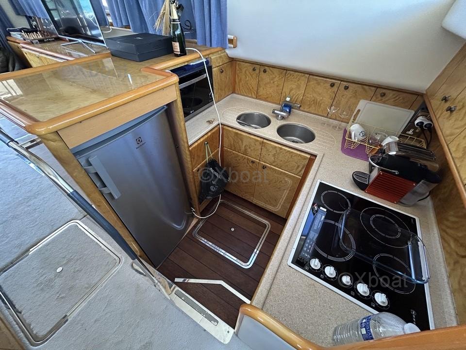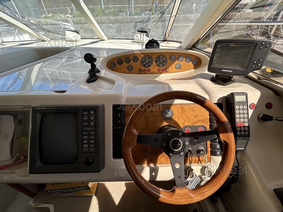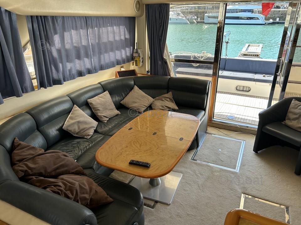 El Princess 500 dispone de tres cabinas dobles y dos baños, ofreciendo un confort óptimo para los viajes largos. También está equipado con un puente de mando y un flybridge, perfectos para disfrutar de la vista y del sol.