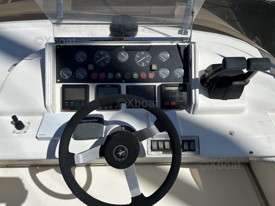 Este Princess 500 es un modelo de 1993, construido por Marine Projects. Mide 15,28 metros de largo y está equipado con dos motores GM Detroit Diesel de 550 CV cada uno, con solo 1100 horas de uso. El barco está en excelente estado, con un mantenimiento reciente de los motores y las baterías en diciembre de 2024.