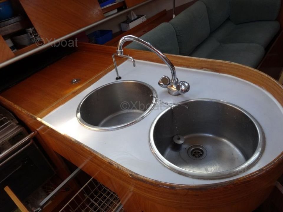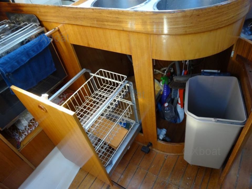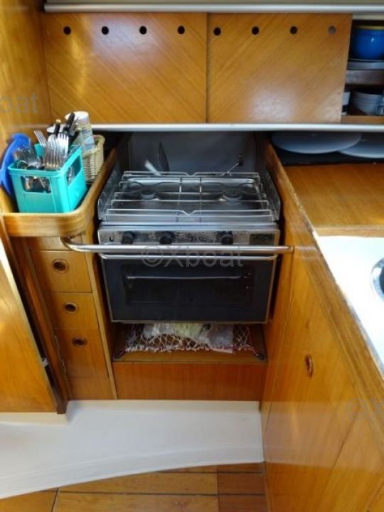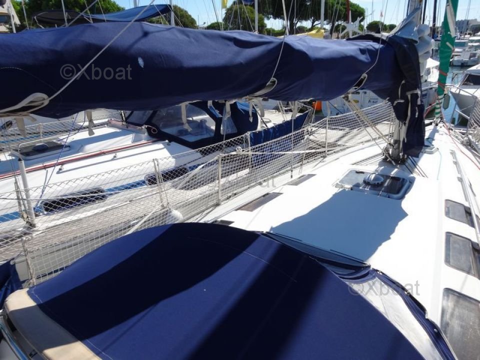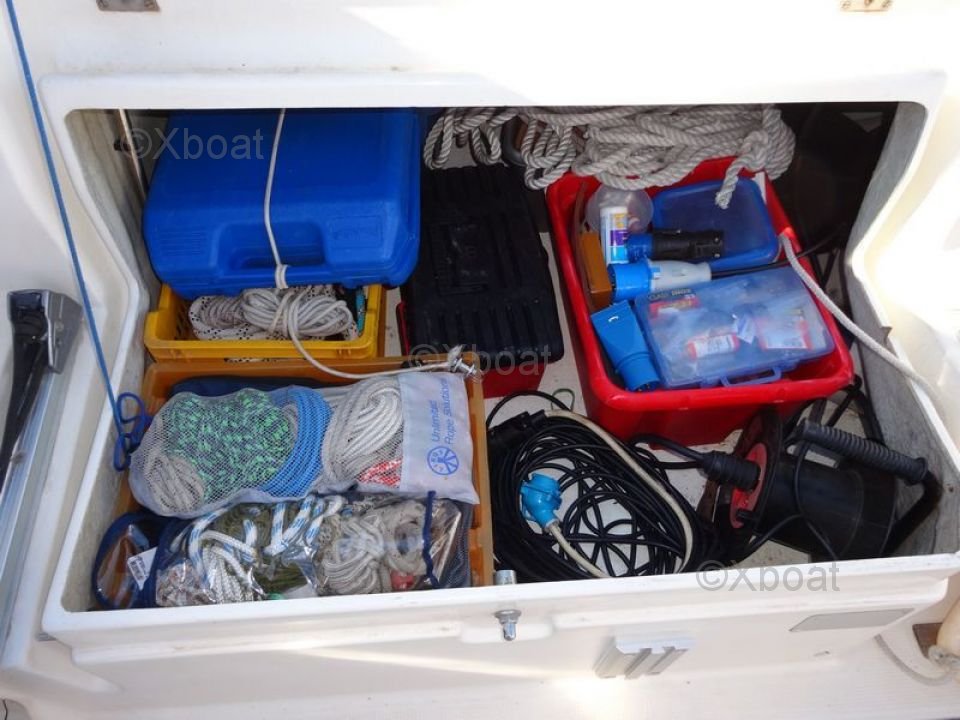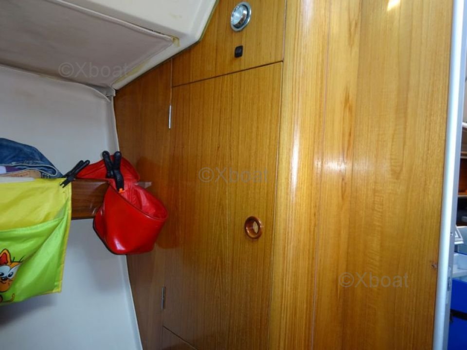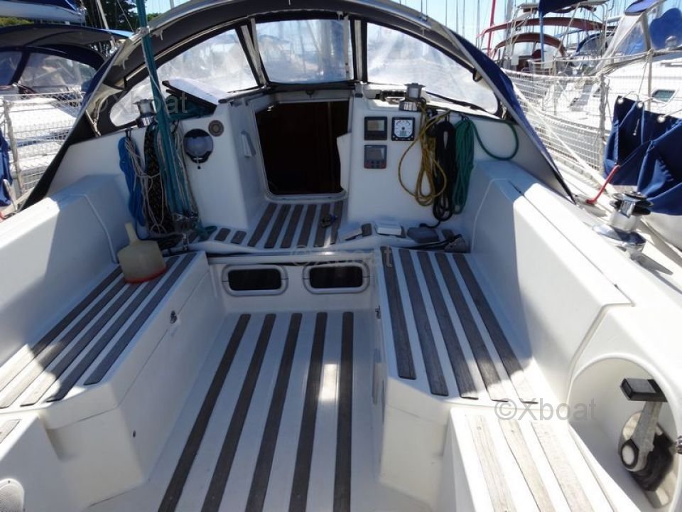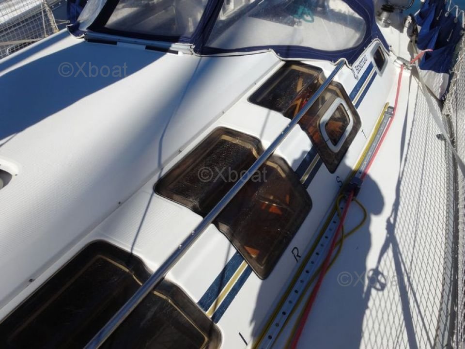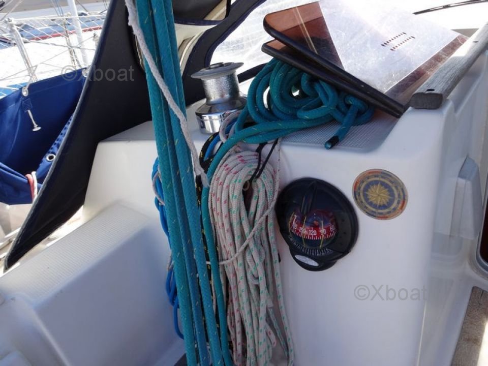 El First 35S5 está equipado con un interior espacioso y bien diseñado, ofreciendo comodidad y funcionalidad. La cubierta es amplia y ergonómica, permitiendo una navegación segura y segura. El casco de poliéster reforzado con fibra de vidrio asegura robustez y durabilidad.