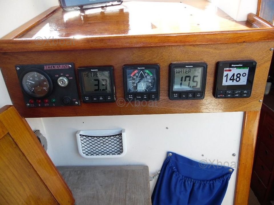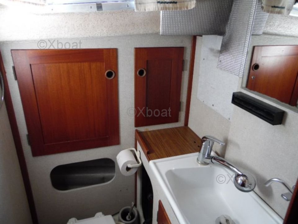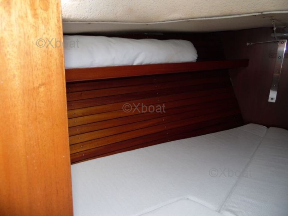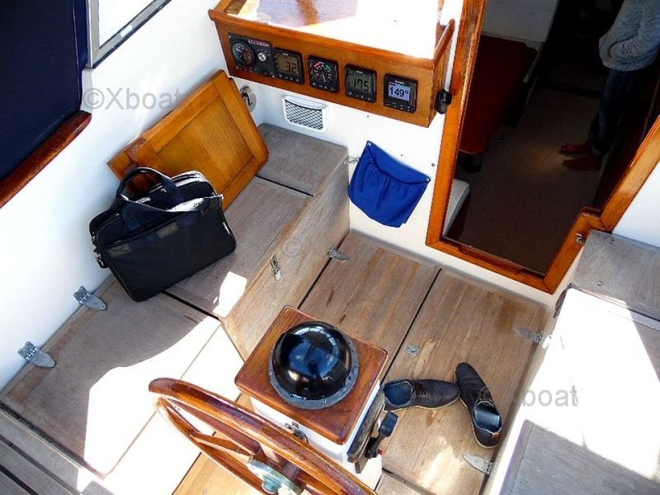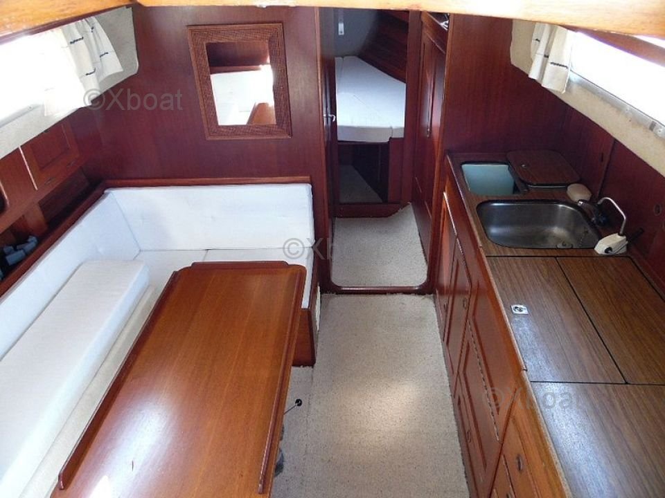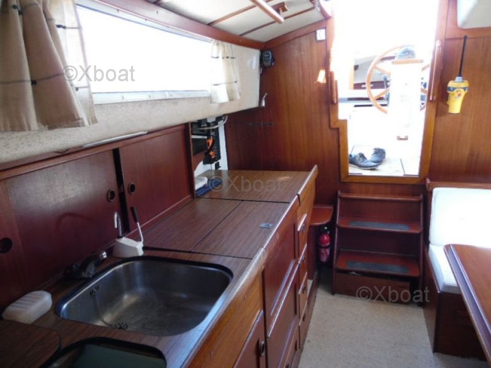 El Rasmus 35 está equipado con un interior espacioso y bien diseñado, ofreciendo una cabina principal con dos literas, una cocina funcional y un baño completo. La estación de gobierno está protegida, proporcionando una buena visibilidad y un confort de navegación apreciable.