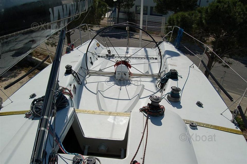 Este velero también está equipado con numerosas opciones de seguridad y navegación, como un GPS, un sonar, un piloto automático y sistemas de comunicación modernos. La COREL 45 - CLASE IC45 es un barco versátil, perfecto para largos cruceros así como para regatas.