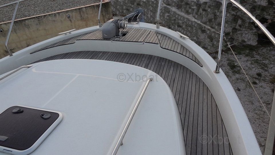 Cubierta y equipo exterior: La cubierta es espaciosa y bien pensada, con áreas de relajación y equipo para la pesca o deportes acuáticos. La flybridge ofrece una vista panorámica y espacio adicional para relajarse con la familia o amigos.