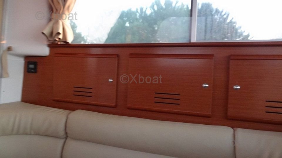 Distribución interior: El interior del barco está diseñado para ofrecer el máximo confort y espacio. Generalmente incluye dos cabinas, un baño con ducha y una cocina bien equipada. La sala de estar es espaciosa y luminosa, con grandes ventanas que ofrecen una vista impresionante del exterior.