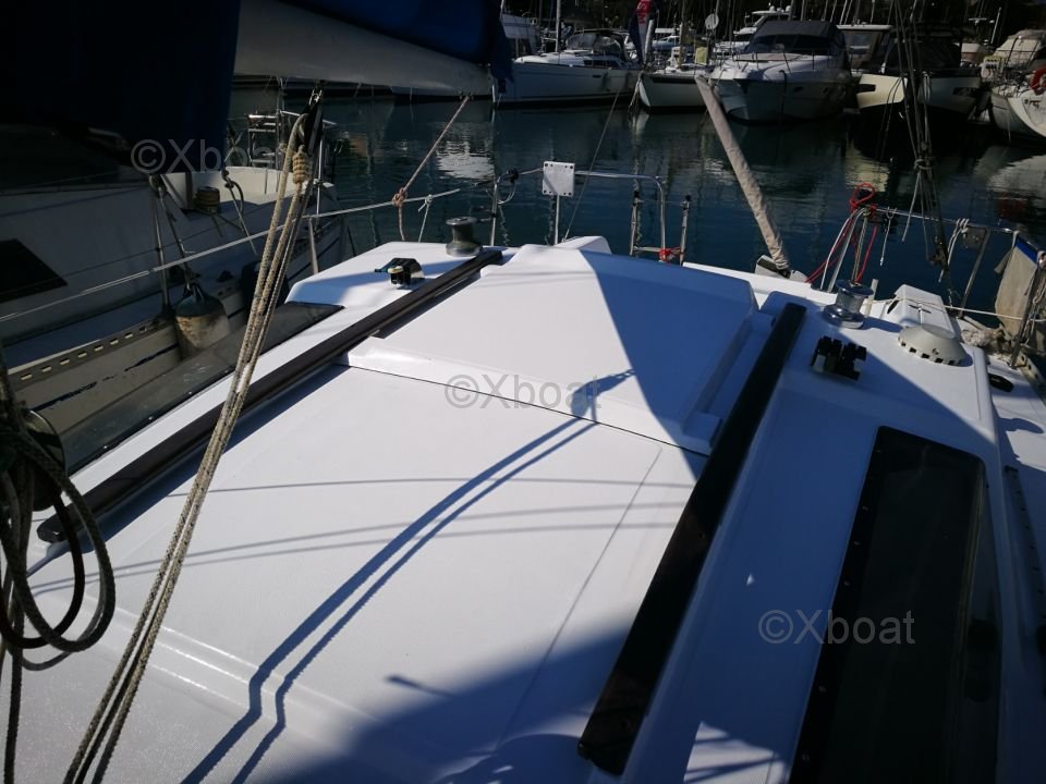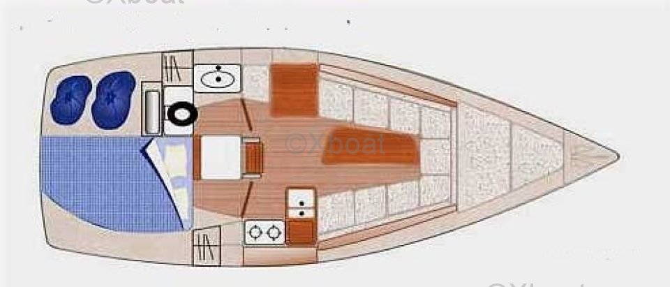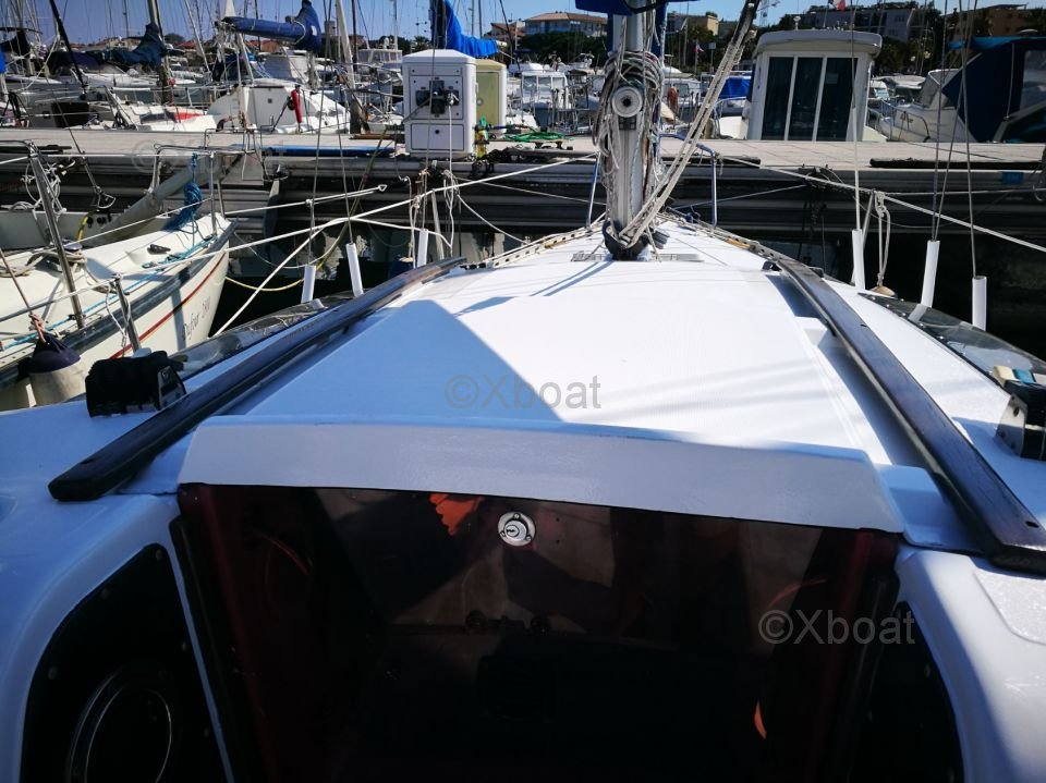 El Gib Sea 76 ofrece un espacio de vida cómodo con una cabina espaciosa y bien equipada. Puede alojar hasta 4 personas en un crucero, con una cabina delantera y un salón que se puede convertir en una litera. La cocina está equipada con todo lo necesario para preparar comidas a bordo.