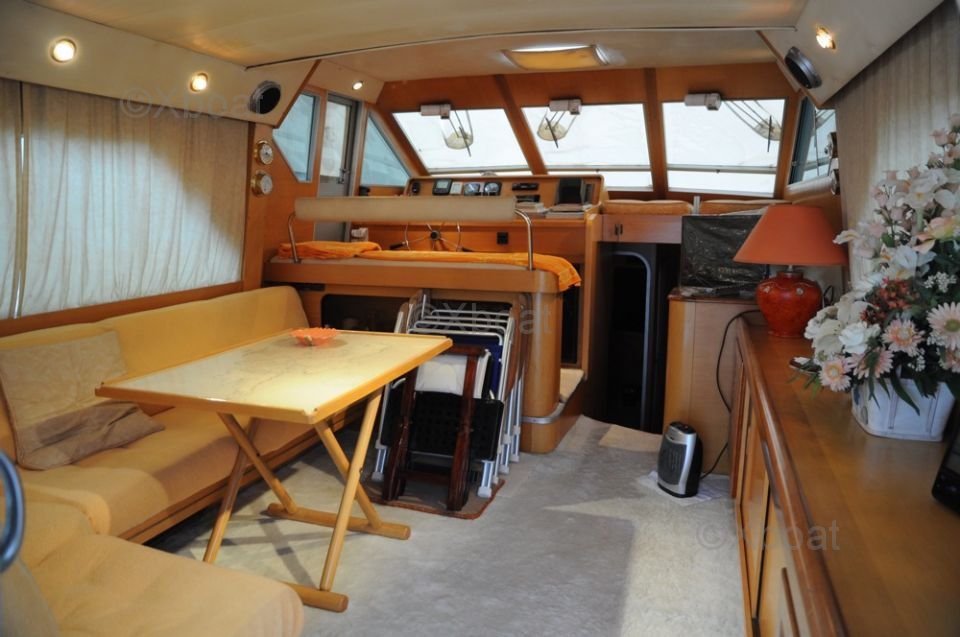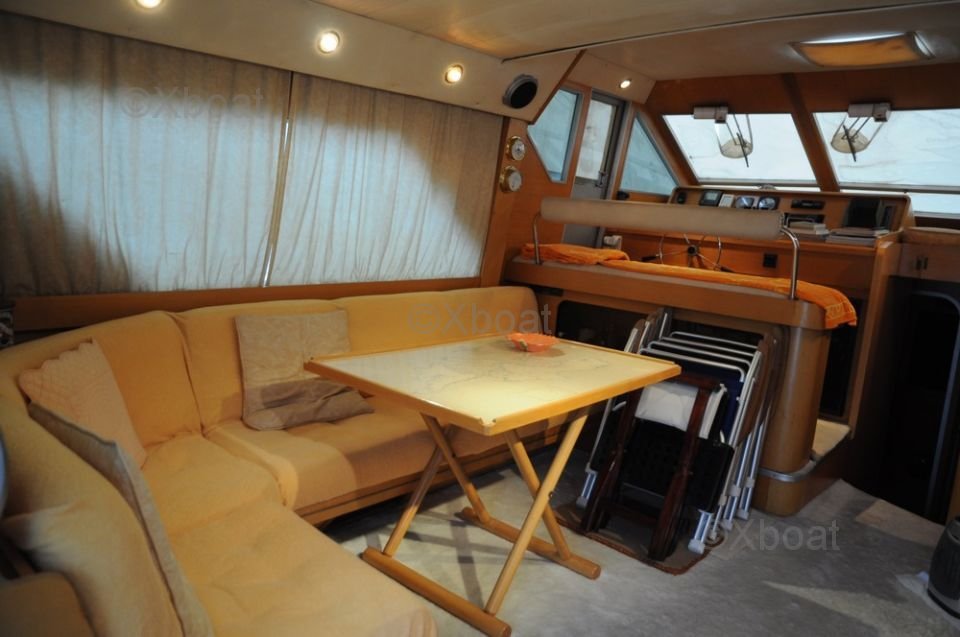 Confort y Comodidades: El Guy Couach 1400 Fly está diseñado para ofrecer un confort excepcional. Cuenta con cinco cabinas lujosas, incluyendo una suite principal con vista panorámica y cuatro cabinas para invitados. Los espacios interiores de vida son espaciosos y elegantemente decorados, con materiales de alta calidad. En el exterior, la cubierta de vuelo ofrece una vista impresionante del horizonte, mientras que la cubierta y la terraza solar son perfectas para relajarse y disfrutar del sol.