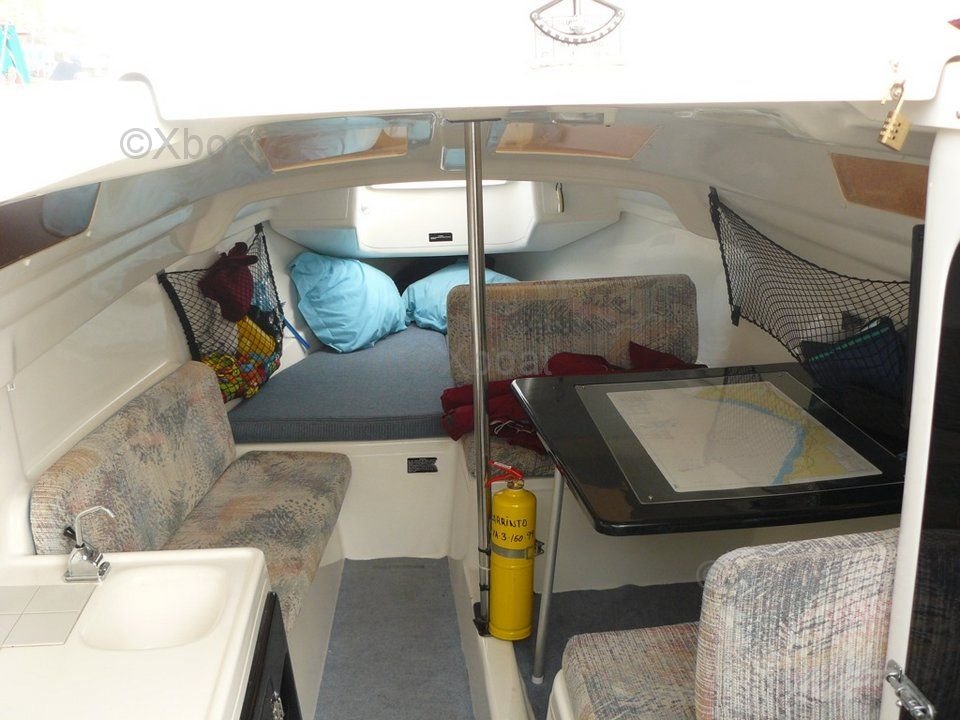 El interior del MacGregor 26 es espacioso y bien diseñado, ofreciendo una cabina principal con espacio para dormir para dos personas, así como una cocineta y espacio de almacenamiento. La cubierta es amplia y cómoda, ideal para salidas en familia o con amigos.