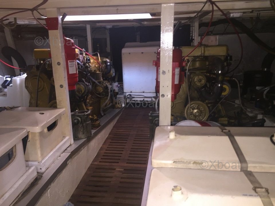 Planta de Potencia: Este barco generalmente está equipado con motores diésel, a menudo motores Detroit Diesel 6V92 o 6V71, ofreciendo una potencia total de 400 a 500 caballos de fuerza. Estos motores son conocidos por su fiabilidad y durabilidad, esenciales para travesías largas.
