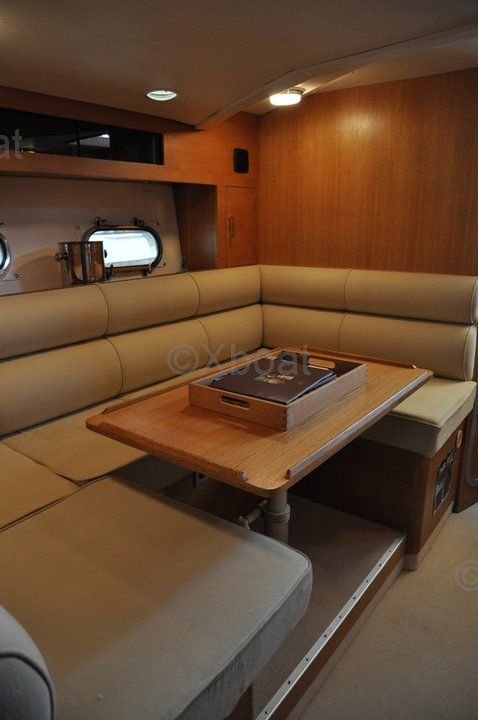 Distribución Interior: El interior de la Princess 36 Riviera está diseñado para ofrecer el máximo confort y espacio. La sala de estar es espaciosa y luminosa, con grandes ventanas que ofrecen una vista despejada del exterior. La cocina está bien equipada, con electrodomésticos modernos y generoso espacio de almacenamiento. Las cabinas, incluyendo la cabina principal y las cabinas de invitados, están elegantemente decoradas y ofrecen camas cómodas para un sueño reparador.