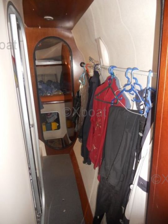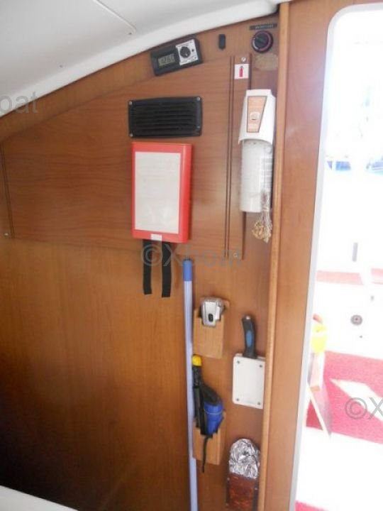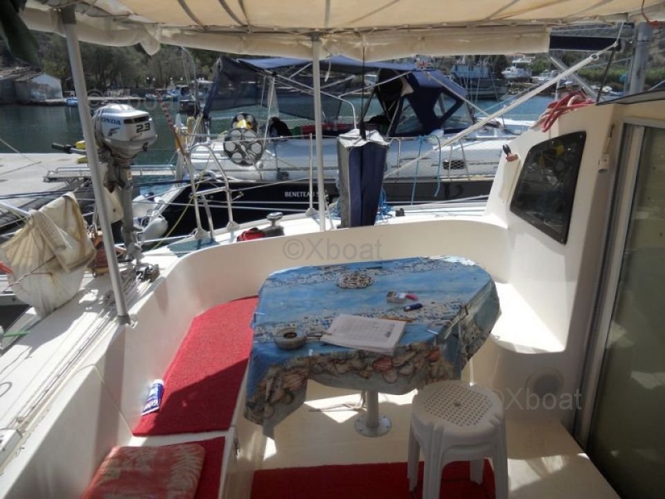 La cubierta de popa es espaciosa y ofrece una vista despejada del horizonte. Está equipada con bancos cómodos y una mesa de comedor. La proa es ideal para relajarse y tomar el sol. Las amplias cubiertas laterales facilitan las maniobras a bordo.