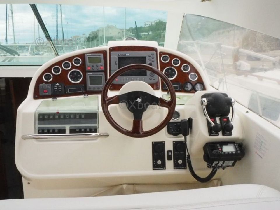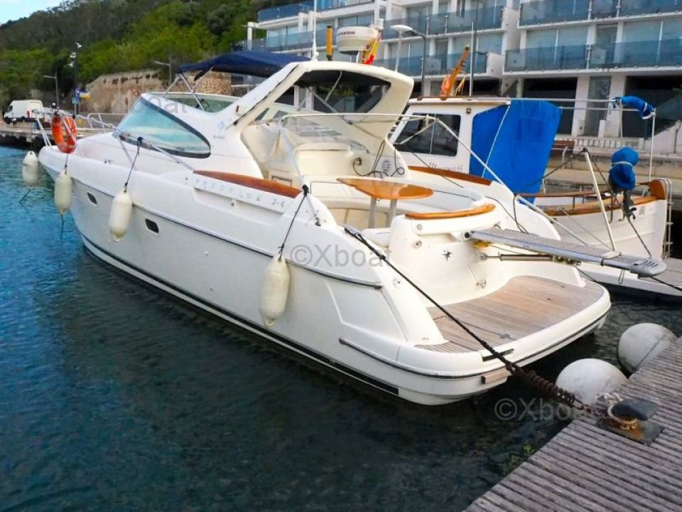 Confort y ocio: El Prestige 34 Open también está equipado con numerosas opciones de confort, como un sistema de aire acondicionado, un estéreo y una nevera. La cubierta es espaciosa y ofrece un espacio ideal para relajarse y disfrutar de los días en el mar.