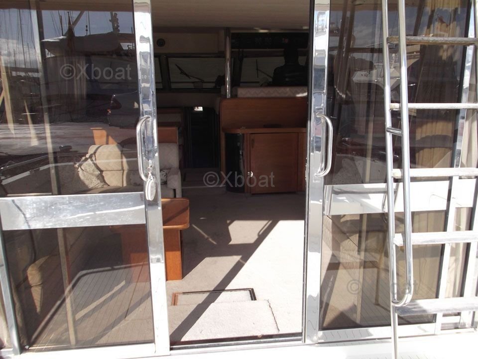 Dimensiones: La Princess 55 mide aproximadamente 16.76 metros de eslora total y 4.72 metros de manga. Su calado de 1.35 metros permite una navegación versátil, adecuada tanto para aguas costeras como para largos cruceros.