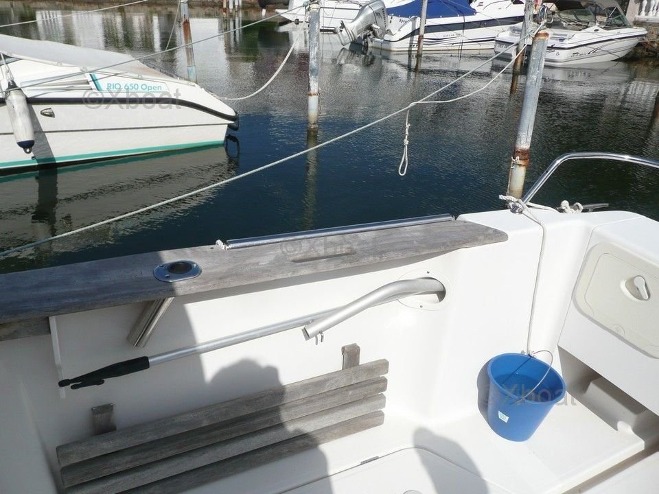 La cómoda y bien protegida cockpit ofrece una gran maniobrabilidad y un óptimo confort para la tripulación. El interior del barco está diseñado para maximizar el espacio de vida, con una cómoda cabina principal y equipamiento moderno para una navegación serena.