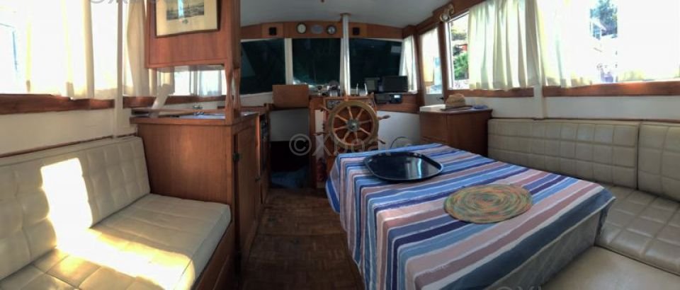 Construcción: Construido con materiales de alta calidad, el Grand Banks 36 Classic se beneficia de un casco reforzado con fibra de vidrio, asegurando durabilidad y resistencia a los elementos marinos. La cubierta está equipada con pasamanos sólidos y numerosos espacios de almacenamiento para el equipo de navegación.