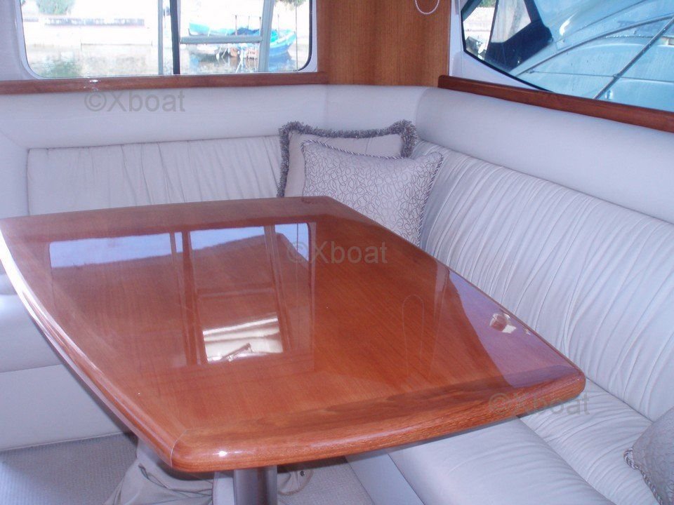 La RIVIERA 37 está equipada con dos cabinas dobles, ofreciendo un espacio de vida cómodo para hasta cuatro personas. La cabina principal cuenta con una gran cama doble y un baño privado, mientras que la cabina de invitados también es espaciosa y bien equipada.