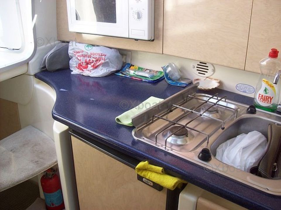 Confort y espacio: Este barco cuenta con una cabina espaciosa con literas cómodas, ideales para estancias nocturnas. La cubierta de popa está bien diseñada para ofrecer un espacio de vida agradable, con asientos ergonomicos y un generoso espacio de almacenamiento.