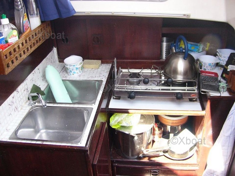 El diseño interior está pensado para ofrecer el máximo confort, con un camarote principal espacioso, una cocina equipada y alojamiento para 6 personas. La cubierta es amplia y ergonómica, permitiendo una navegación fácil y segura.