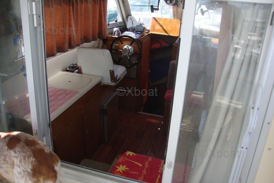Distribución interior: La embarcación cuenta con una espaciosa y bien diseñada cubierta con asientos ergonómicos para el conductor y los pasajeros. El interior incluye una cabina cómoda con literas, una cocina bien equipada y un baño con ducha.
