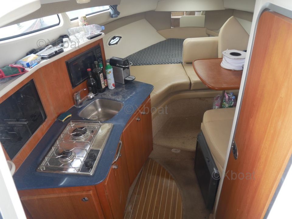 El Bayliner 275 SB destaca por su amplio y bien diseñado cockpit, ofreciendo suficiente espacio para relajarse y disfrutar de las salidas al mar. La proa también es generosa, perfecta para tomar el sol o actividades acuáticas. En el interior, la embarcación cuenta con una cómoda cabina con literas para varias personas, así como una cocina equipada y un baño.