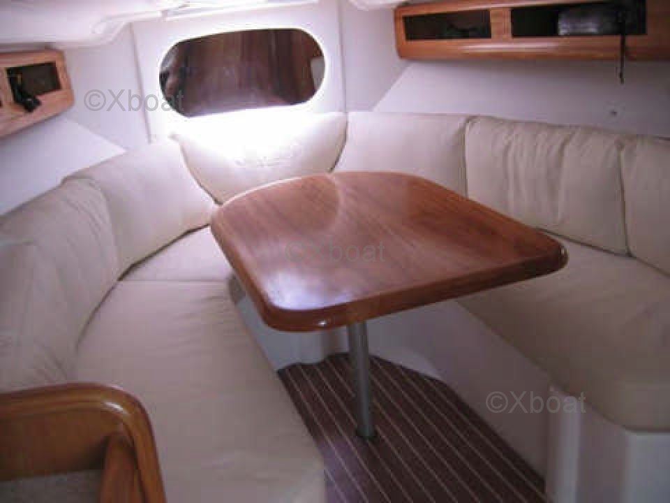 Distribución interior: El barco tiene dos camarotes dobles, proporcionando un espacio de dormir cómodo para cuatro personas. El salón es espacioso y luminoso, con una mesa de cartas y asientos convertibles. La cocina está bien equipada con un fregadero, un refrigerador y una estufa de gas.