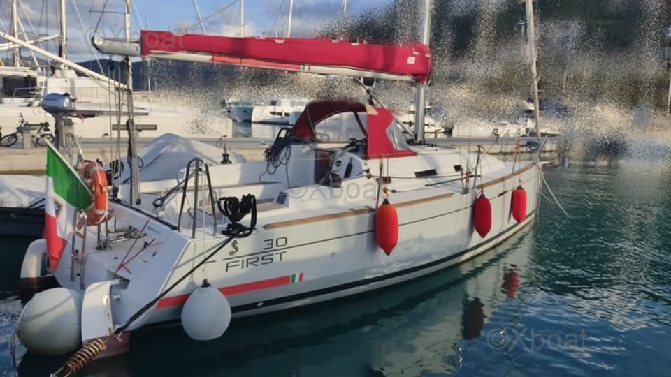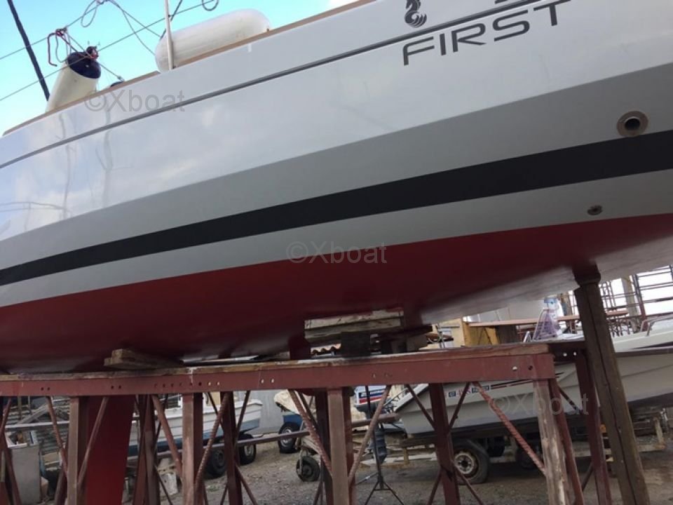 El First 30 E está equipado con una quilla larga, lo que le da una excelente estabilidad y buen comportamiento en la mar. La cubierta de popa es espaciosa y bien diseñada, ofreciendo buena ergonomía para las maniobras a bordo. En el interior, el barco tiene dos cabinas y un baño, proporcionando un confort apreciable para cruceros de varios días.