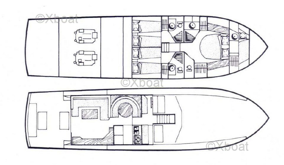 Dimensiones: El Guy Couach 1601 Fly mide aproximadamente 49 metros de eslora total, con una manga de 9 metros y un calado de 2.5 metros. Estas dimensiones le permiten navegar por diversas aguas mientras ofrece un interior espacioso y lujoso.