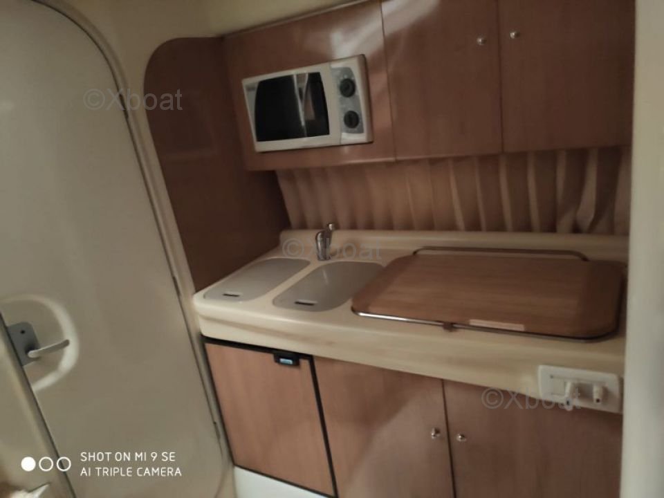Confort y Equipamiento: La amplia y bien diseñada cubierta del GOBBI 345 SC está equipada con asientos cómodos y ajustables, permitiendo diferentes configuraciones según las necesidades. La cabina interior ofrece un espacio de vida agradable con alojamiento para 4 personas, una cocina completamente equipada y un baño completo.