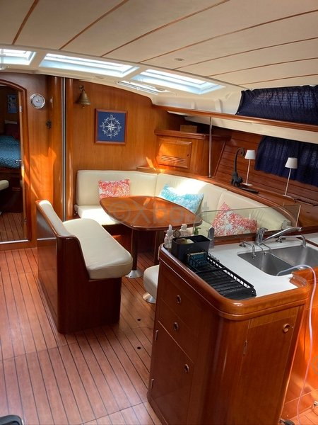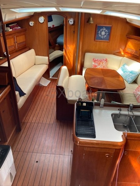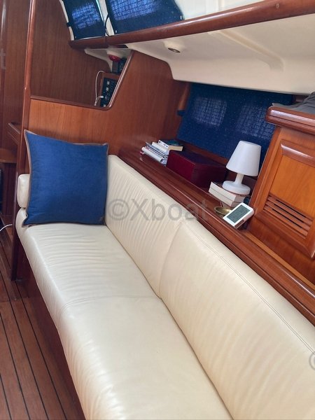Mi OCEANIS 473 Clipper es un modelo muy buscado por varias razones. En primer lugar, ofrece un confort excepcional gracias a sus 3 cabinas y sus 2 baños, uno de ellos con un inodoro eléctrico. Además, está equipado con una cocina bien equipada y un salón convertible con tapicería en cuero blanco.