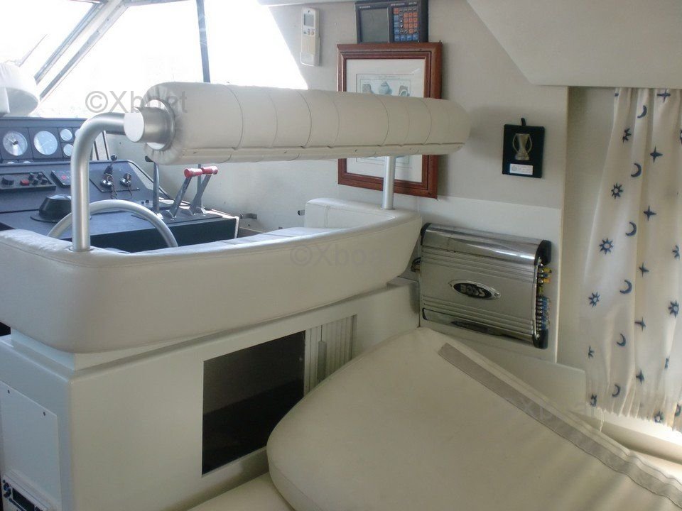 La cubierta de popa está bien equipada con un área de comedor y una sala de estar al aire libre, perfecta para comidas al aire libre. El barco también está equipado con sistemas de navegación modernos, incluyendo GPS, sonar y radar, asegurando una navegación segura y placentera.