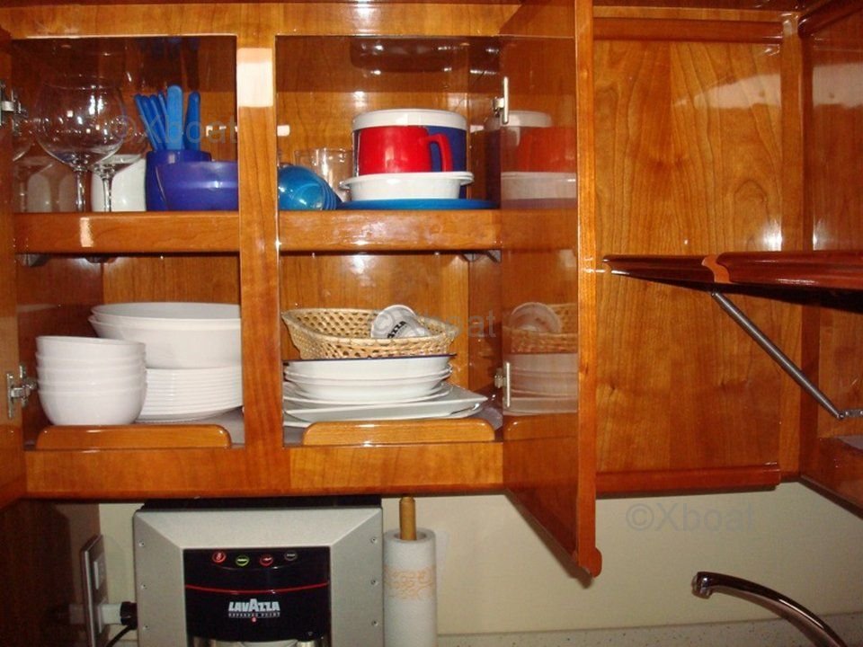 Electrónica y equipos: El Rodman 56 Fly está equipado con sistemas de navegación modernos, que incluyen pantallas multifuncionales, radares, sondas y sistemas de comunicación VHF. También están presentes equipos de seguridad avanzados, como extintores automáticos, sistemas de detección de humo y balsas salvavidas.