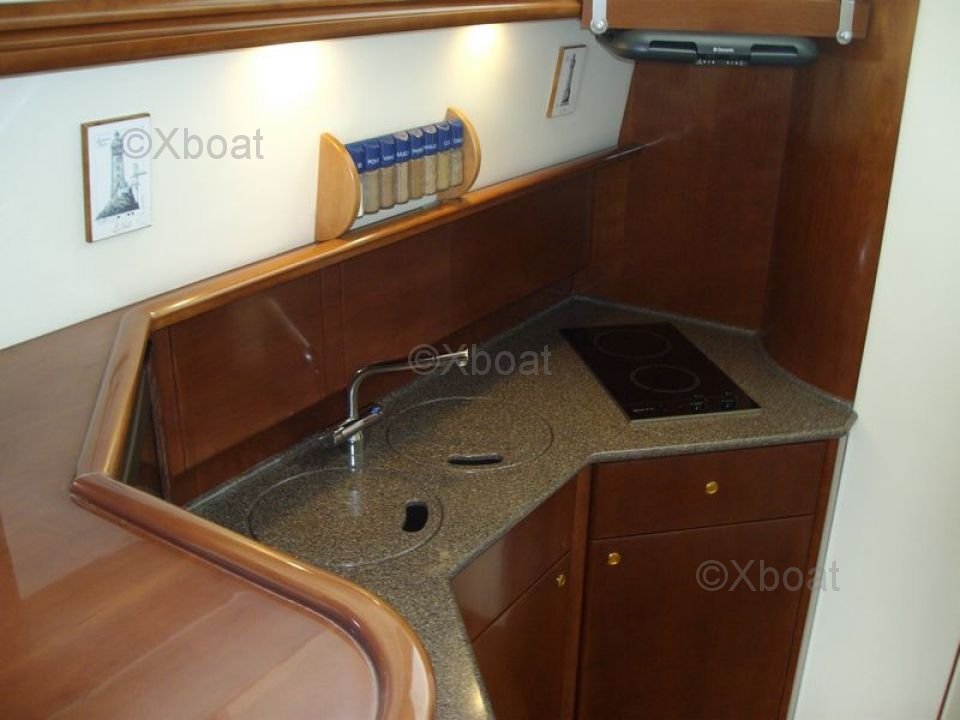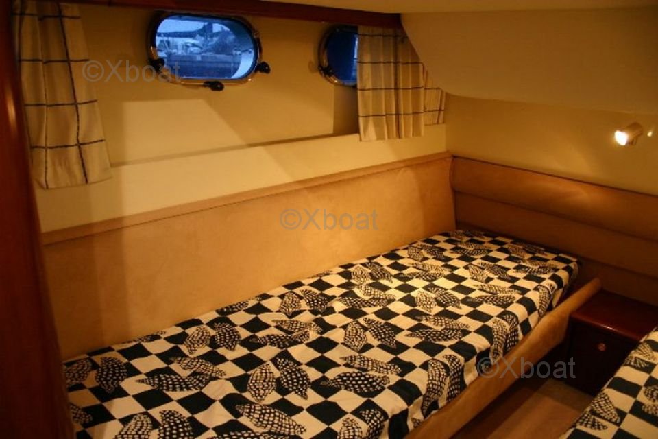 La Princess 40 Fly está equipada con una amplia flybridge, que ofrece una vista panorámica y espacio adicional de vida. El interior está diseñado con materiales de alta calidad, proporcionando una comodidad óptima para viajes largos. La cabina principal cuenta con una cama doble, mientras que las cabinas de invitados ofrecen camas individuales o literas.