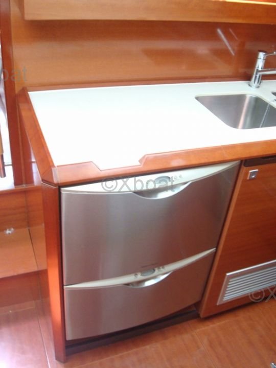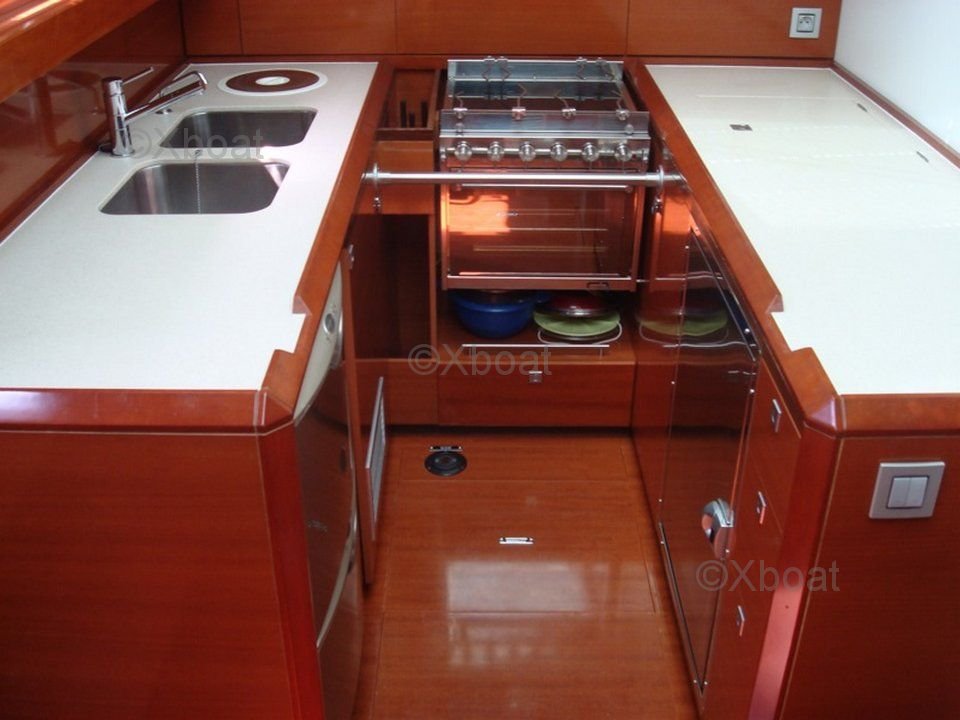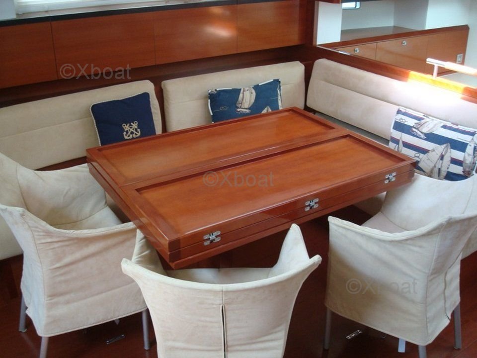 El CNB Bordeaux 60 está equipado con un motor Yanmar de 110 HP, ofreciendo una propulsión fiable y eficiente. El casco de fibra de vidrio y la cubierta de teca aseguran durabilidad y una estética impecable. El diseño interior es espacioso y lujoso, con acabados de alta calidad y materiales nobles.