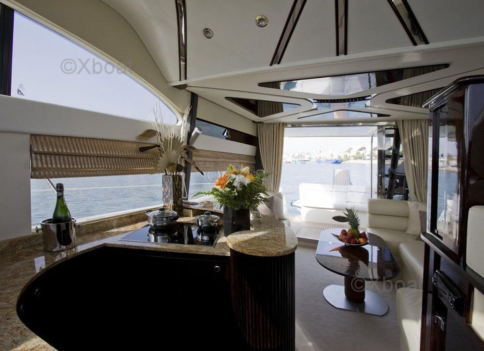 El Azimut 52 está diseñado para ofrecer una experiencia de navegación inolvidable. Su interior espacioso y lujoso incluye tres cabinas, cada una equipada con camas dobles y baños privados. El salón y la cockpit están diseñados para maximizar el confort y la convivencia, con acabados de madera preciosa y equipo de alta tecnología.