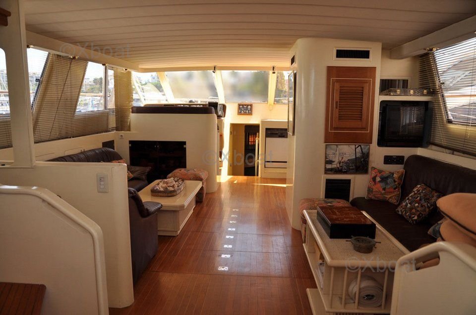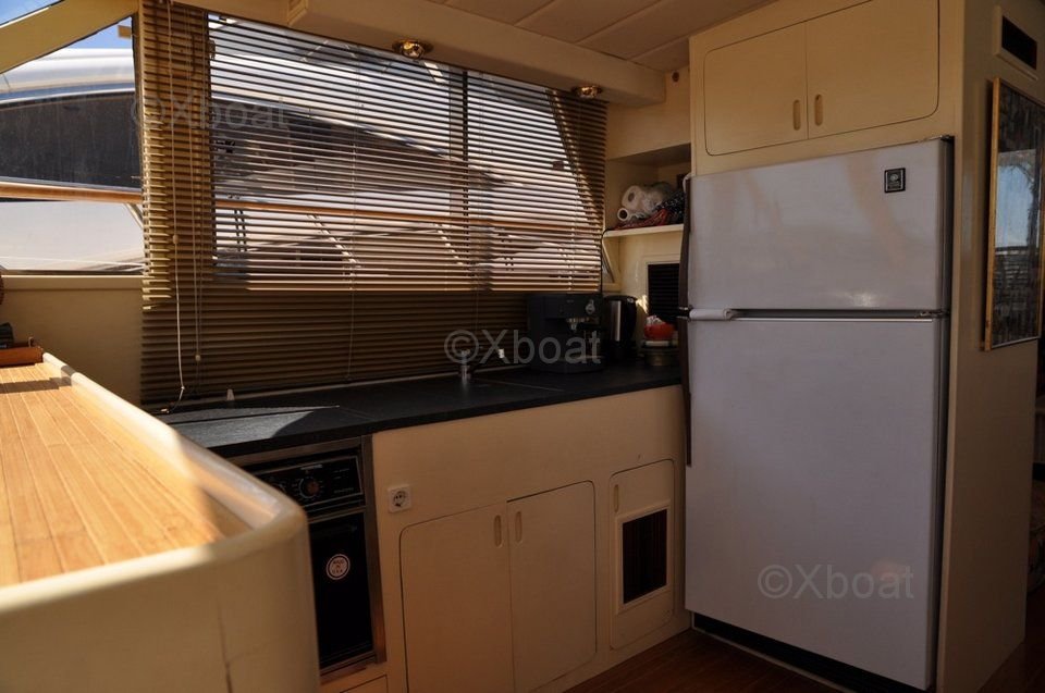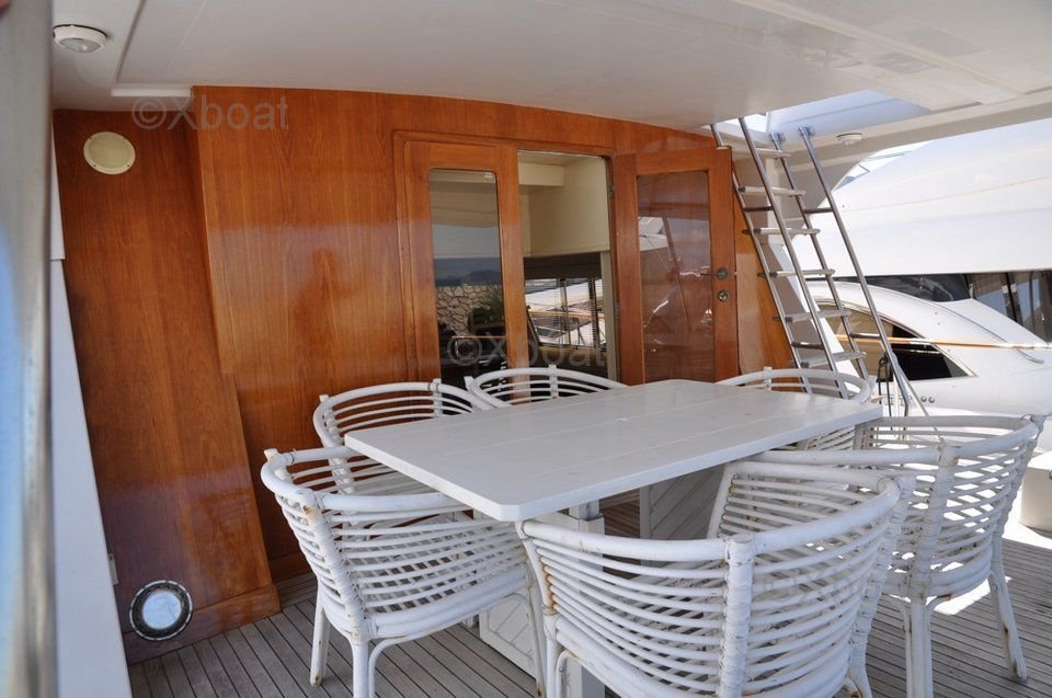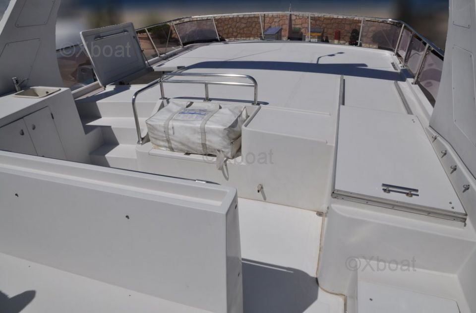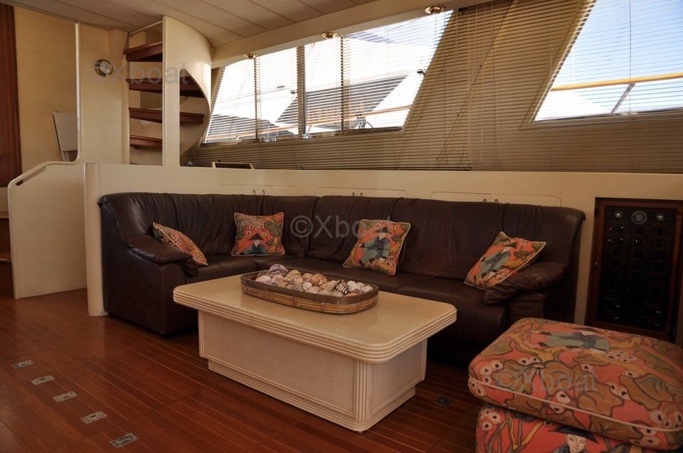 La cubierta principal es espaciosa y cuenta con numerosos espacios de vida al aire libre, perfectos para que la familia o los amigos se relajen. El flybridge ofrece una vista impresionante y está equipado con asientos cómodos y una consola de navegación completa.
