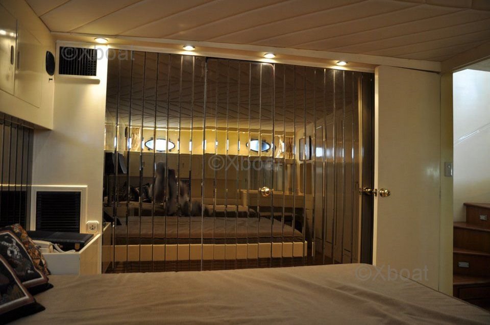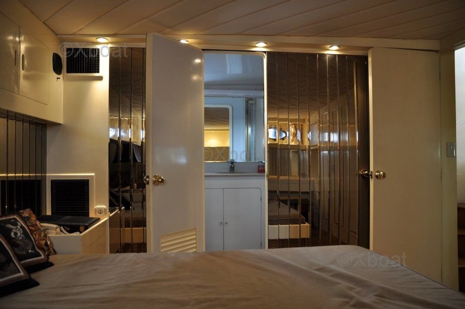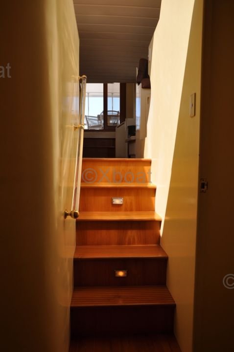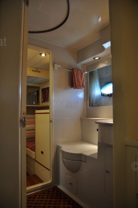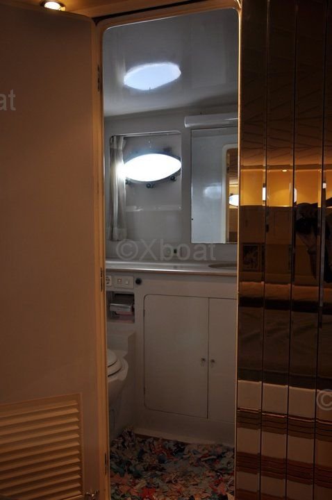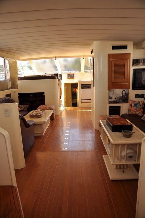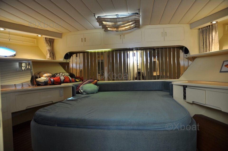 En el interior, el Trawler 57 Fly ofrece alojamiento lujoso con varias cabinas y baños. La cabina principal está ubicada en la proa y cuenta con una gran cama y almacenamiento abundante. Las cabinas para invitados también están bien diseñadas para ofrecer confort y privacidad.