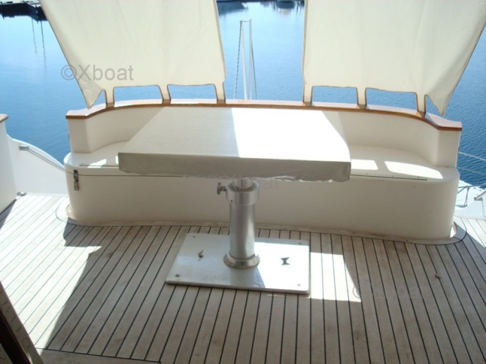 Exterior: La cubierta principal está diseñada para el entretenimiento, con una gran área de relajación, un espacio para comer y una estación de timón protegida. La cubierta de vuelo ofrece una vista panorámica y está equipada con asientos cómodos, una barra y espacio para una jacuzzi opcional.
