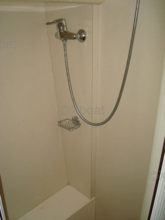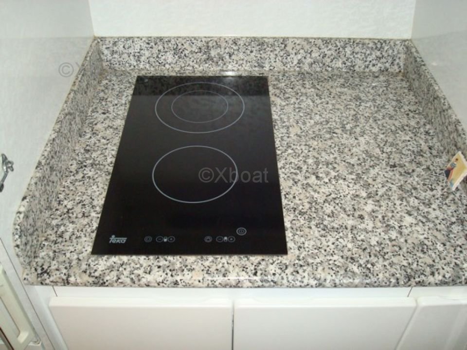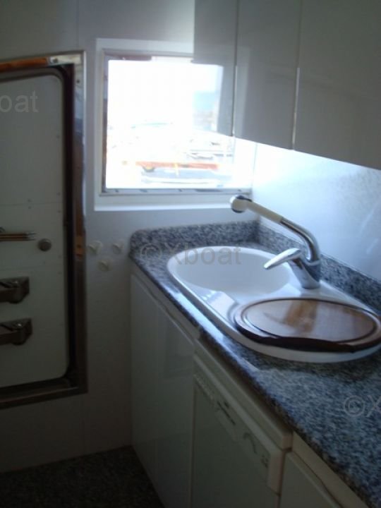 Espacios de Vida: El yate cuenta con tres cabinas, incluyendo una suite principal hacia proa con baño privado, una cabina doble y una cabina con literas. La sala principal es espaciosa y luminosa, con grandes ventanas que ofrecen una vista desobstruida del exterior. La cocina está bien equipada y abierta a la sala, facilitando las interacciones sociales.