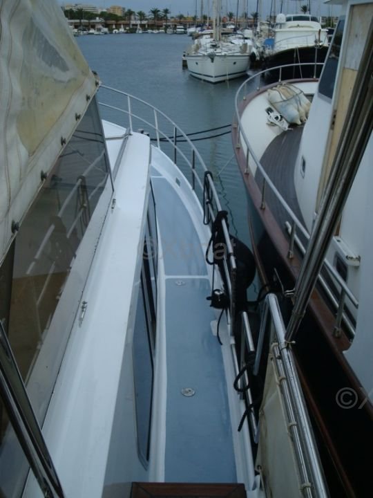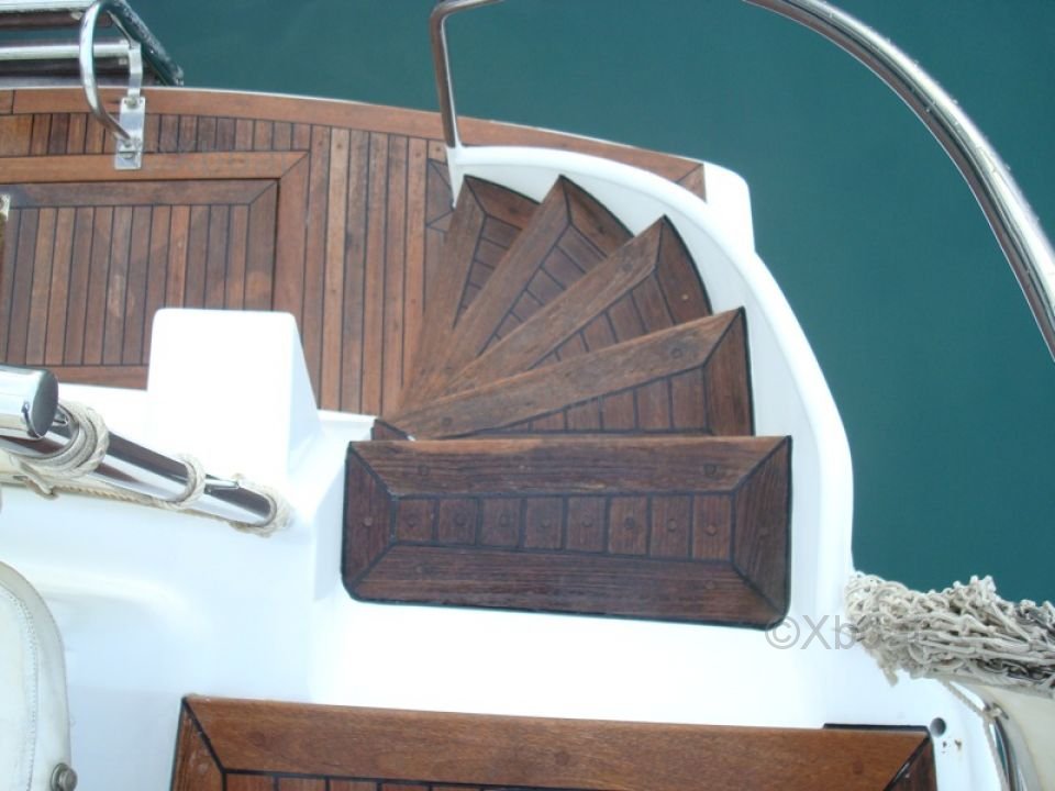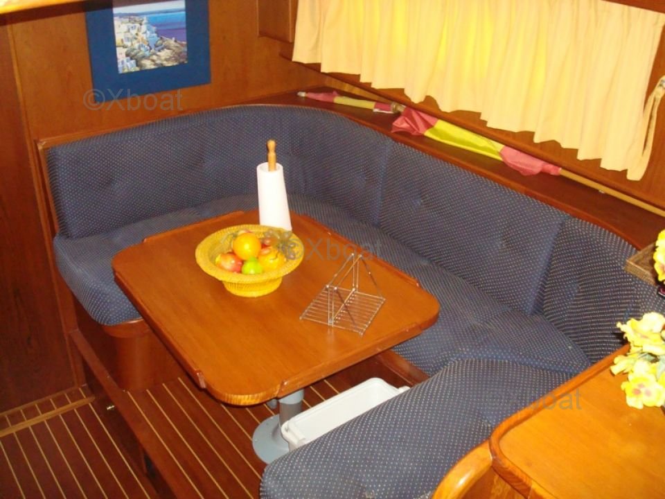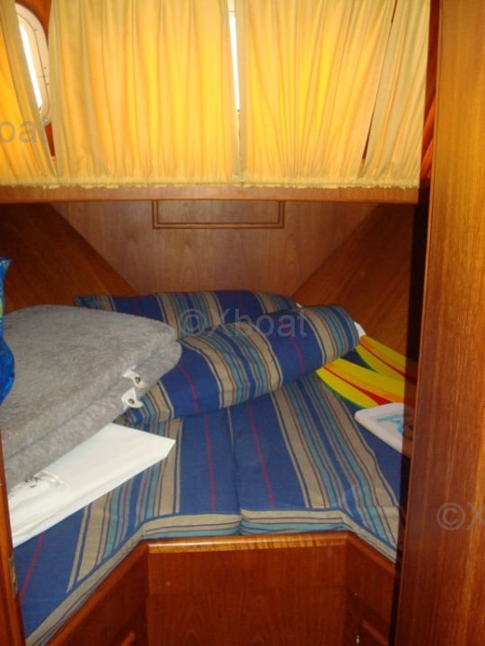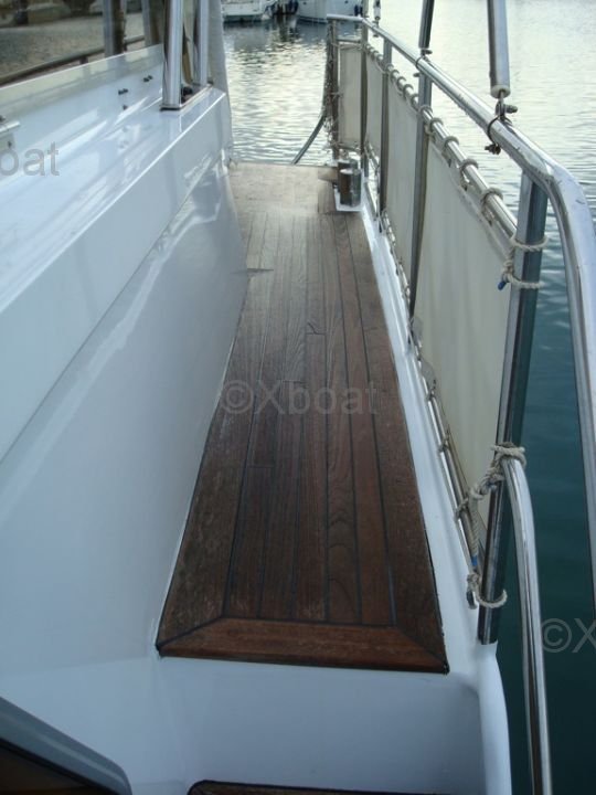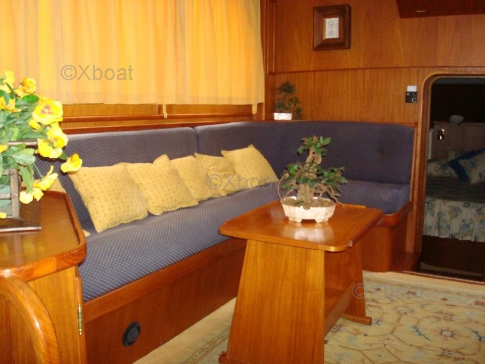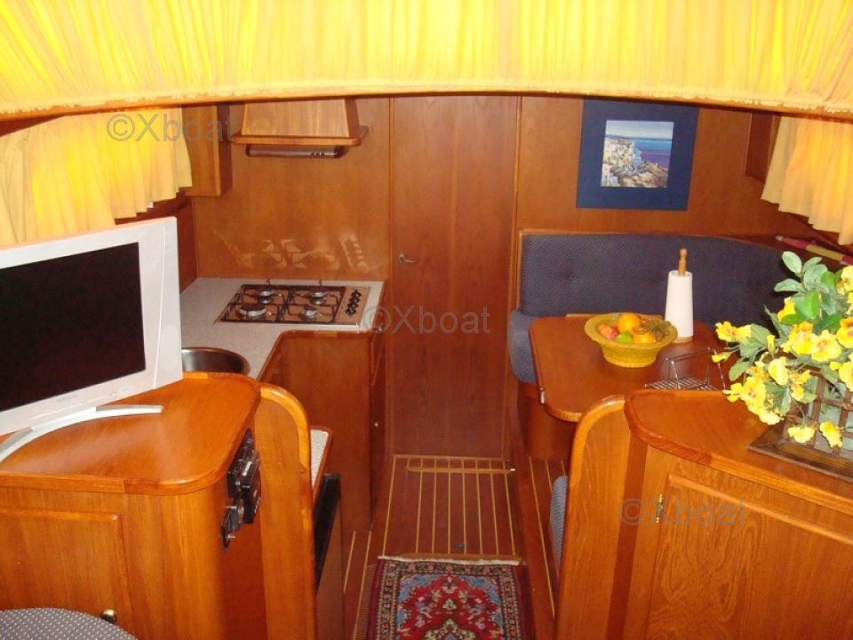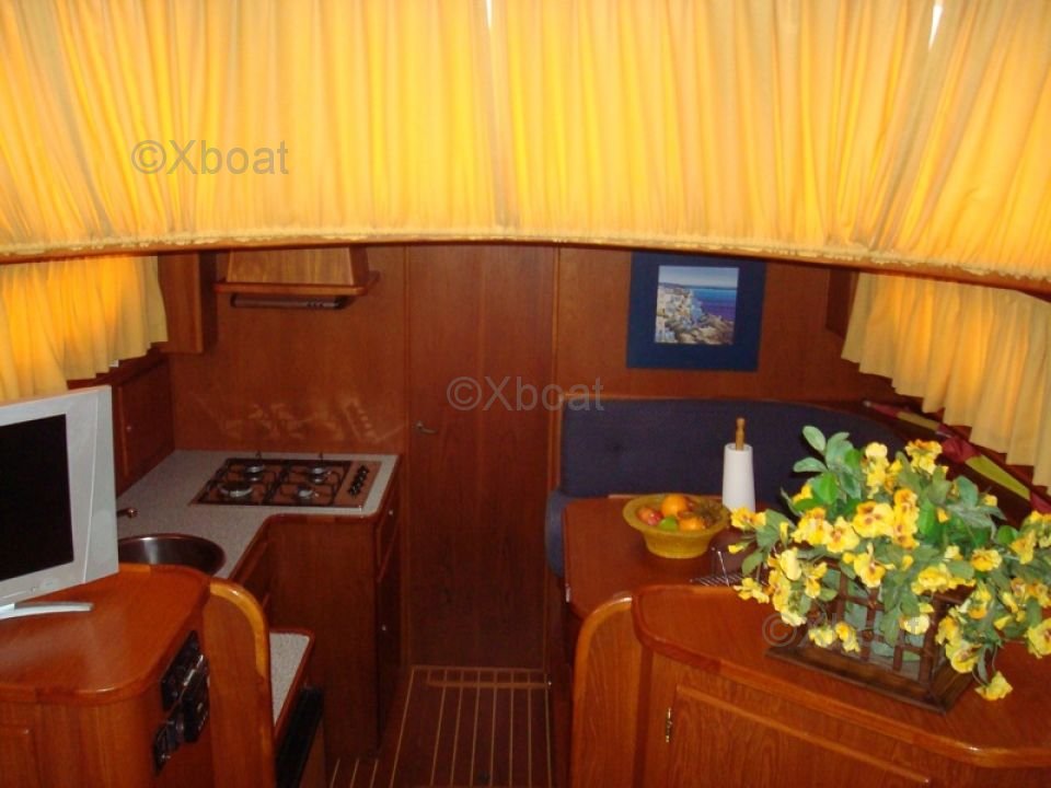 El interior del barco es espacioso y bien organizado, con cómodas cabinas y espacios de vida funcionales. La cubierta de popa está diseñada para ofrecer una experiencia de navegación óptima, con asientos ergonómicos y equipo de navegación moderno.