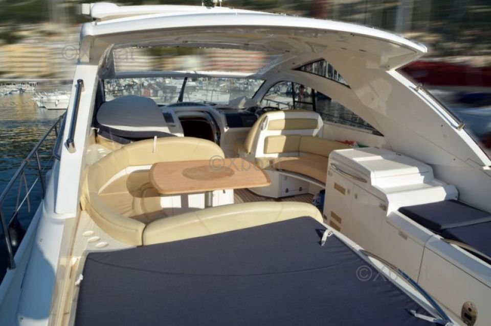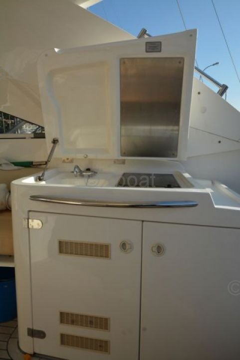 Confort y Ocio: La cubierta principal está diseñada para ofrecer un espacio de vida al aire libre agradable, con un salón, una cocina exterior y una zona para tomar el sol. La cockpit está equipada con asientos cómodos y una mesa de comedor, perfecta para comidas al aire libre.
