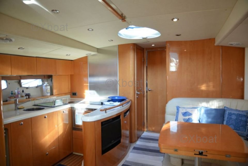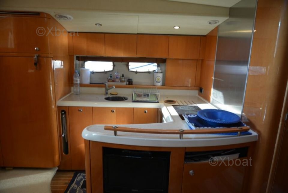 Equipamiento: El Fairline 52 Targa Gran Turismo HT está equipado con numerosas características de vanguardia, como un sistema de navegación GPS, radar, sonar y un sistema de comunicación VHF. Además, incluye un sistema de aire acondicionado, una nevera y un congelador para el máximo confort a bordo.