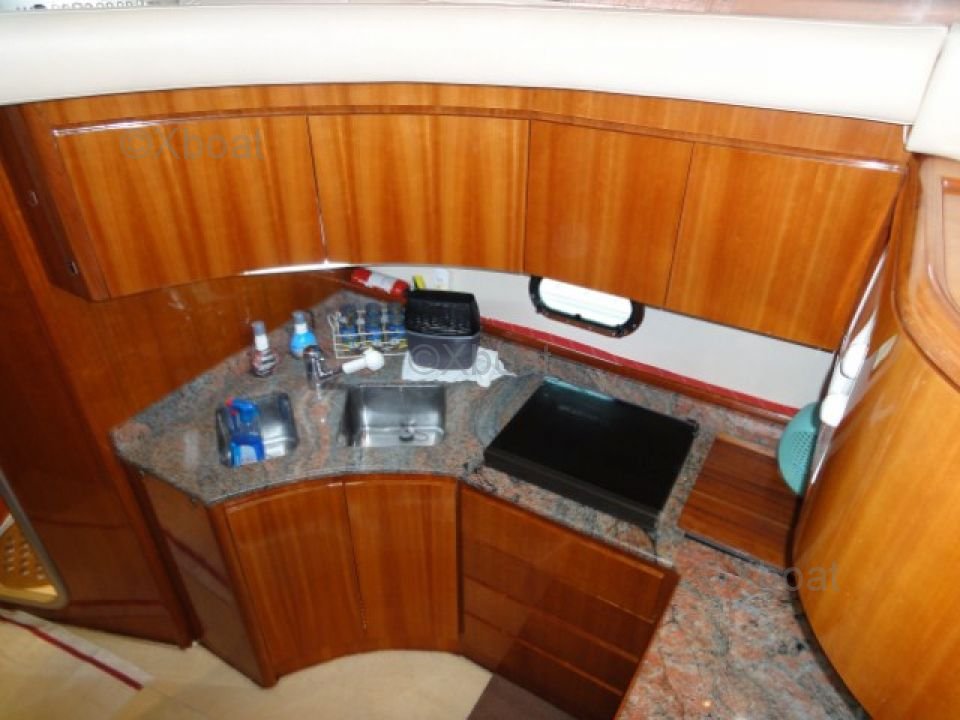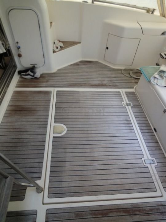 Equipamiento de cubierta: La cubierta principal es espaciosa y bien diseñada, con un área de estar al aire libre, una mesa de comedor y una cubierta de sol delantera. La cockpit está equipada con un sistema de navegación completo, incluyendo GPS, radar y un sonar.