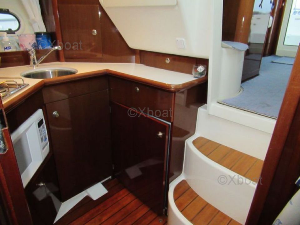 Distribución interior: El interior del Prestige 32 está diseñado para ofrecer el máximo confort y espacio. Cuenta con dos cabinas dobles, un baño completo con ducha y un salón espacioso con una cocina bien equipada. Los materiales utilizados son de alta calidad, asegurando durabilidad y estética.
