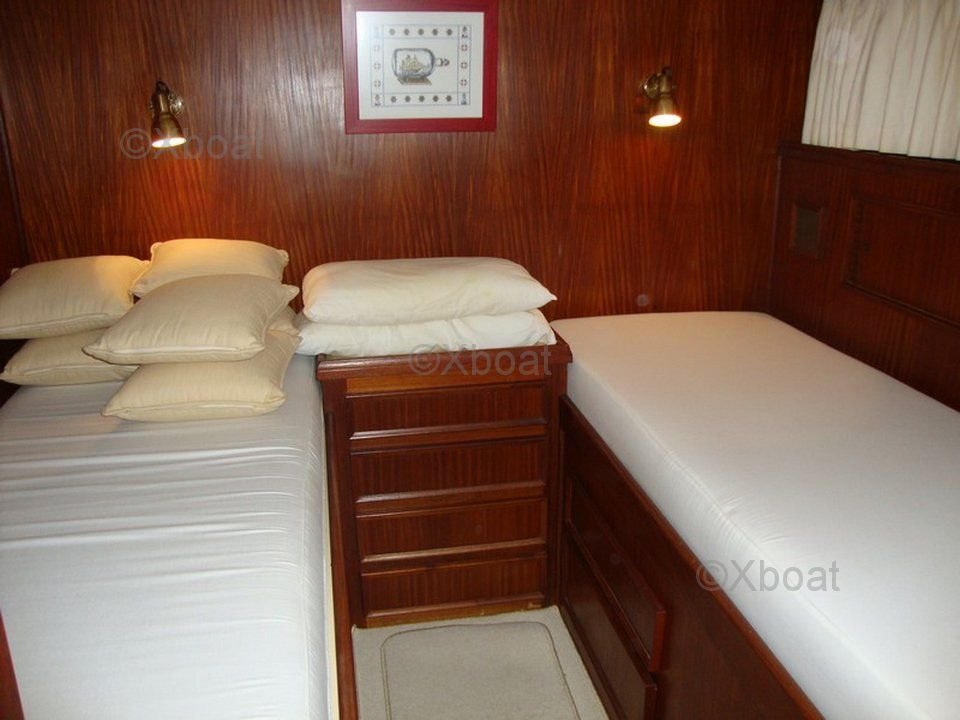 Distribución interior: Este barco cuenta con tres cabinas y dos baños, proporcionando un espacio de vida cómodo para hasta seis personas. La cabina principal es espaciosa y bien iluminada, mientras que las cabinas de invitados también están bien diseñadas para ofrecer la máxima comodidad.