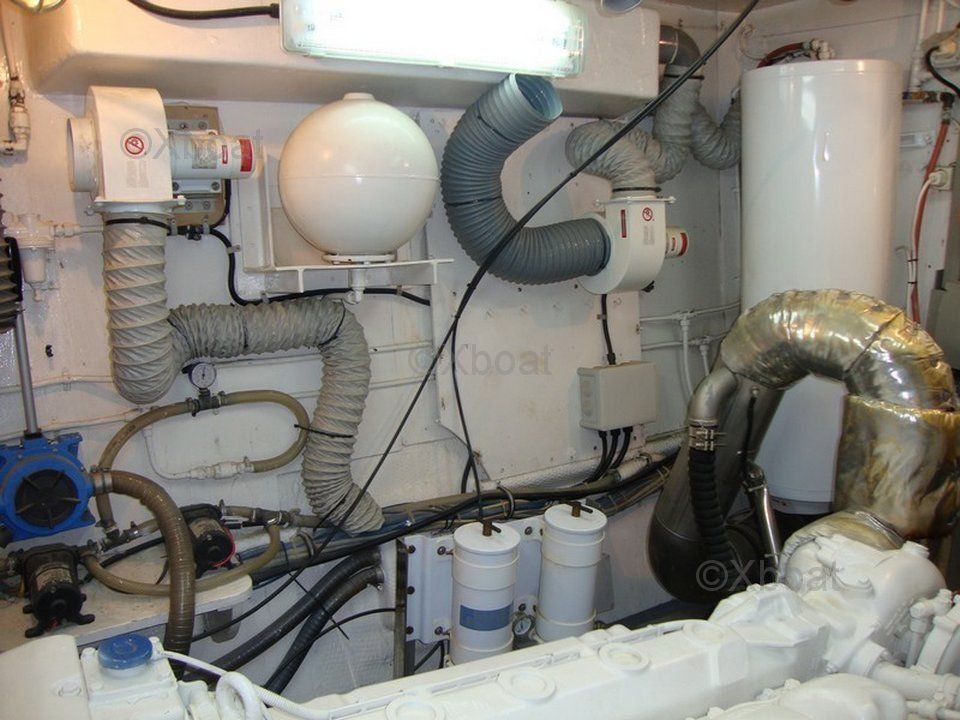 Motor: El Hatteras 53 Classic generalmente está equipado con dos motores diésel, a menudo Detroit Diesel 8V92TA o Cummins 6CTA8.3, proporcionando una potencia total de 480 a 540 caballos de fuerza, lo que permite una velocidad de crucero cómoda y un buen alcance.