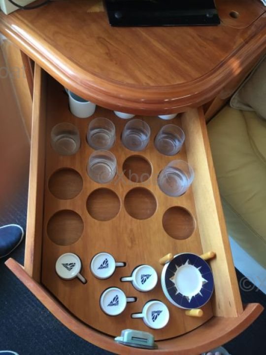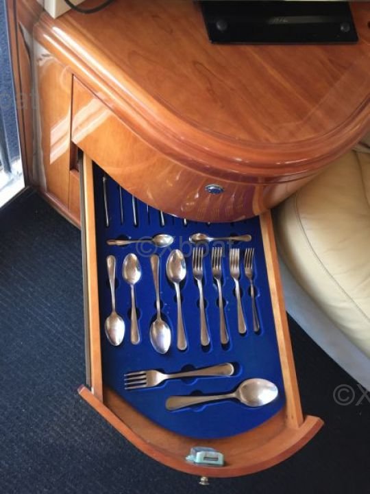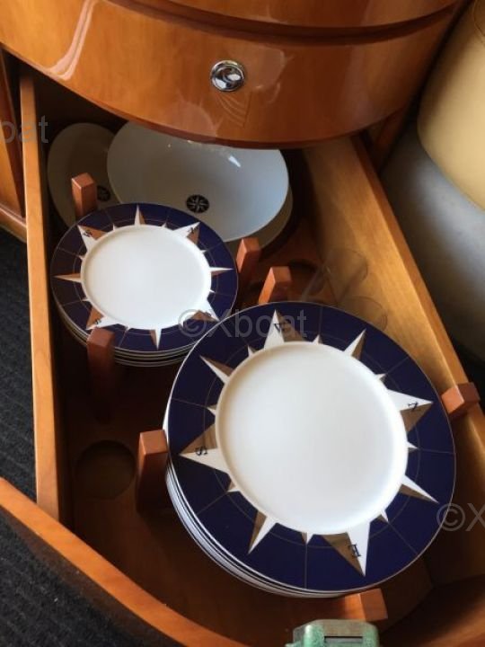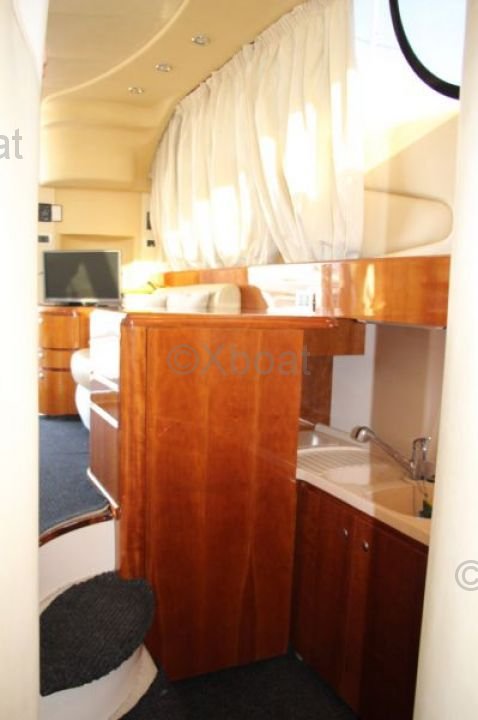 Distribución interior: El interior del barco está diseñado para ofrecer el máximo confort y funcionalidad. Incluye dos cabinas, un baño, una cocina completamente equipada y una sala de estar espaciosa. Materiales de alta calidad y diseño moderno crean una atmósfera acogedora y lujosa.