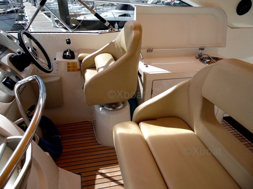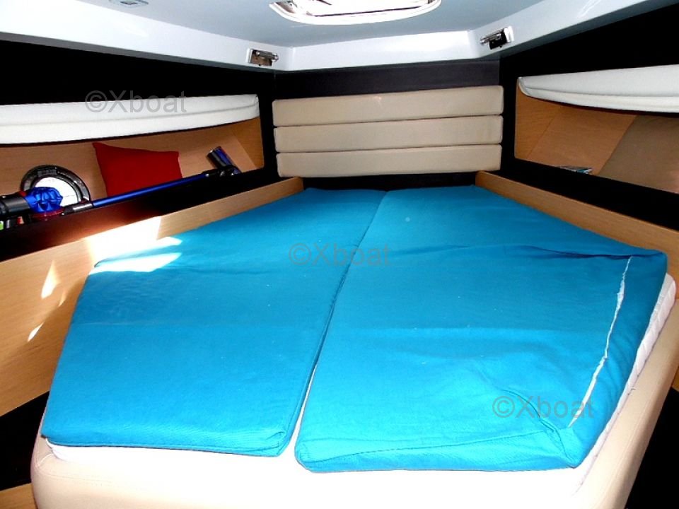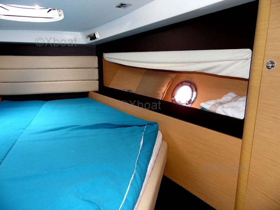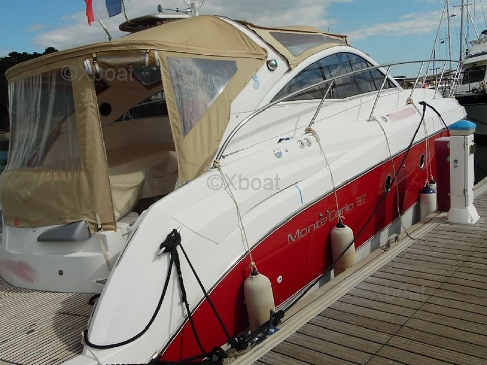 Distribución interior: El interior del Monte Carlo 37 Open es espacioso y luminoso, con acabados de alta calidad. Cuenta con dos camarotes, incluyendo un camarote principal con una cama doble y un camarote de invitados con literas. El baño está equipado con una ducha separada y un inodoro eléctrico.