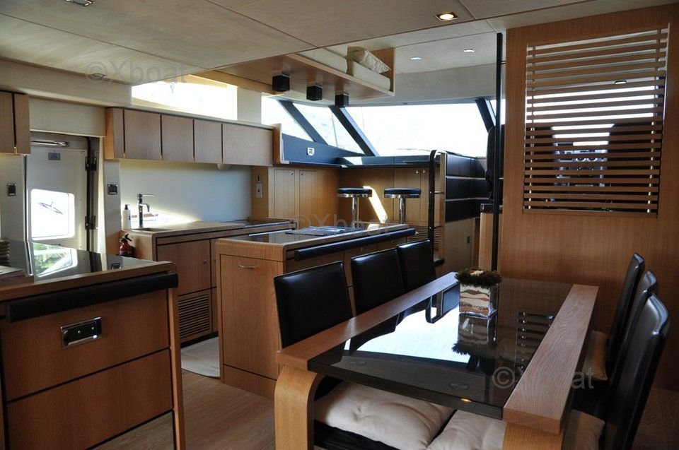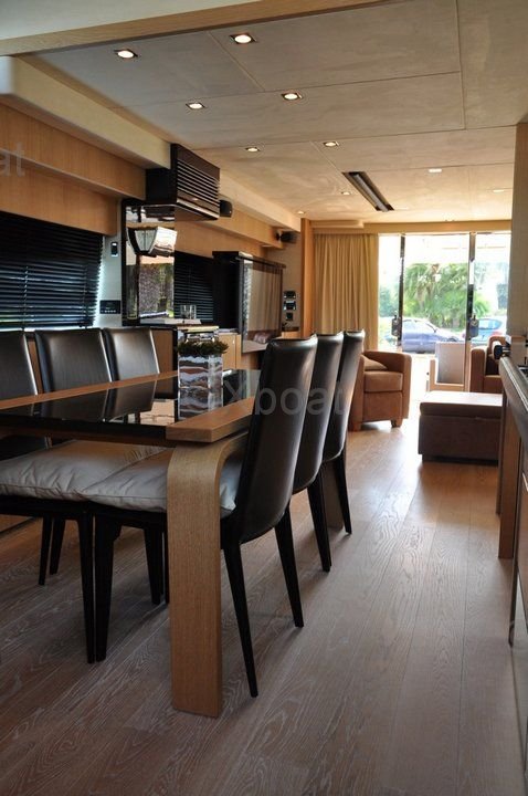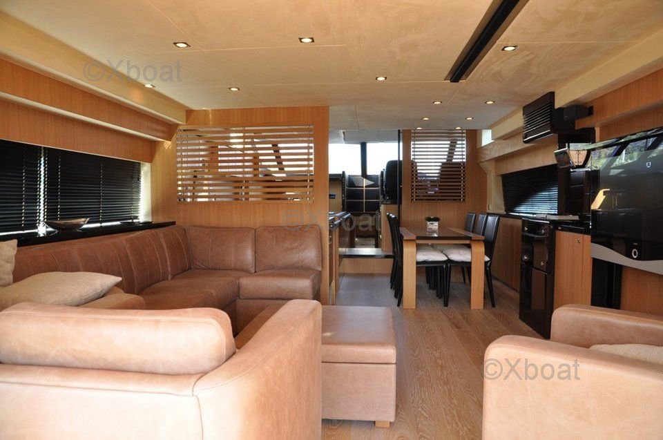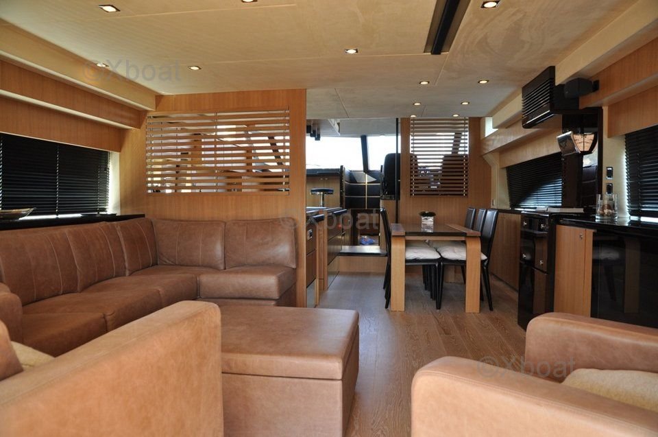 Disposición interior: El interior del Fairline 70 Squadron está diseñado para el lujo y el confort. Generalmente incluye cuatro cabinas, con una suite principal que cuenta con un baño privado, dos cabinas dobles y una cabina individual, así como tres baños adicionales. La sala de estar y la cockpit son espaciosas, ofreciendo espacios de vida acogedores y elegantes.