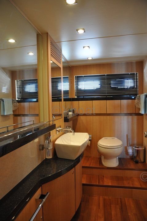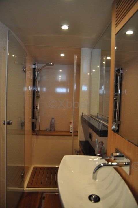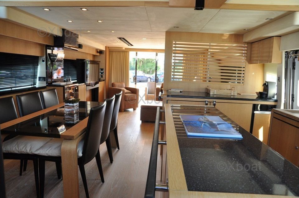 Equipamiento: Este yate está equipado con numerosas características modernas, como un sistema de navegación avanzado, equipos de entretenimiento, un sistema de aire acondicionado y opciones de personalización para satisfacer las necesidades específicas de los propietarios. La plataforma de natación hidráulica y el sistema de estabilización en el ancla también son grandes activos para el confort a bordo.