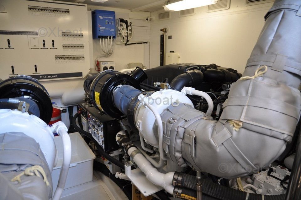 Motor: El Fairline 70 Squadron generalmente está equipado con potentes motores diésel, a menudo MAN o Caterpillar, que ofrecen una potencia total de hasta 2 x 1,550 hp. Estos motores permiten al yate alcanzar una velocidad de crucero cómoda de 24 nudos y una impresionante velocidad máxima de 28 nudos.